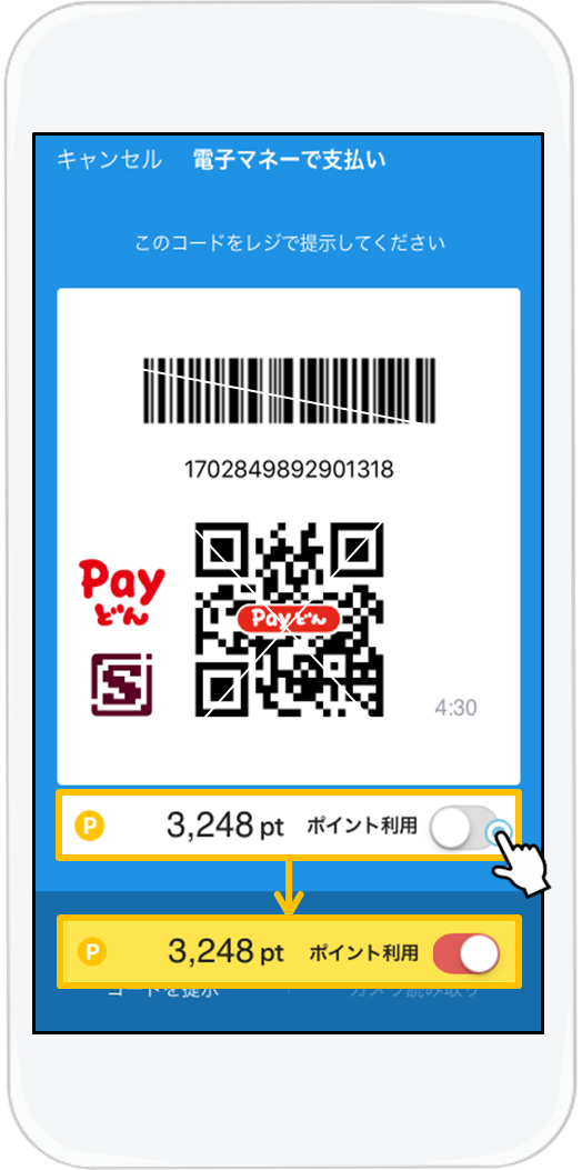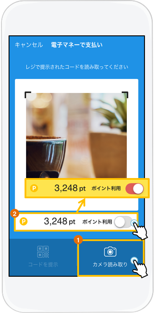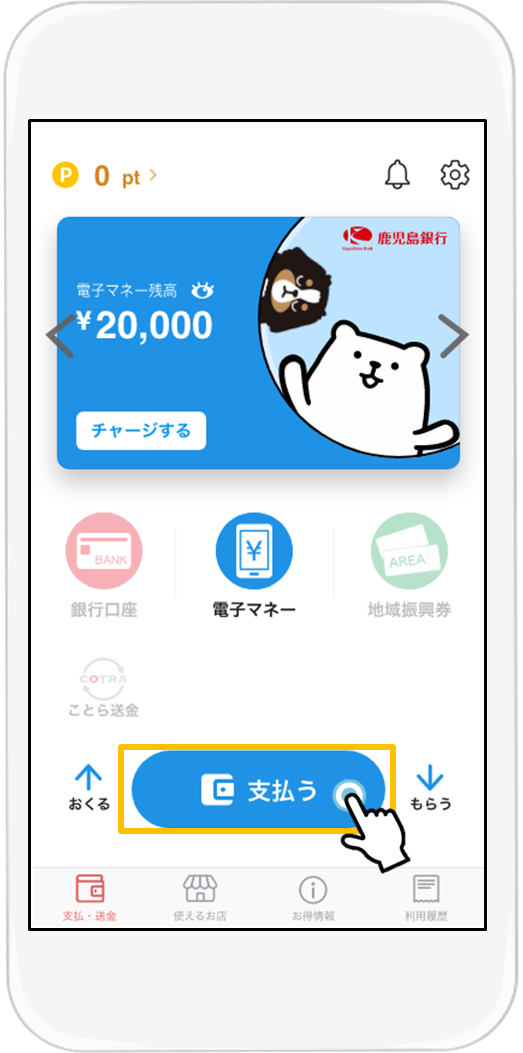 アプリにチャージしたお金でお支払いする方法です。使いすぎが心配な方におすすめです。